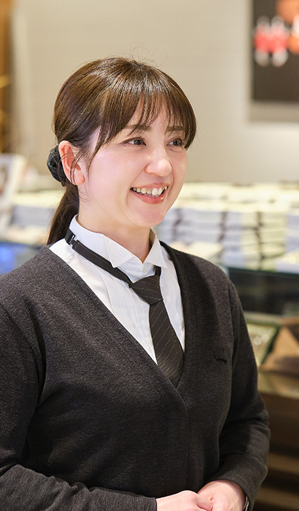 言葉遣いはもちろんですが、お客様の気持ちに寄り添って接客をし、安心感を持ってくださることと、会話を大切にしているので、笑顔は自然と出てくると思っています。